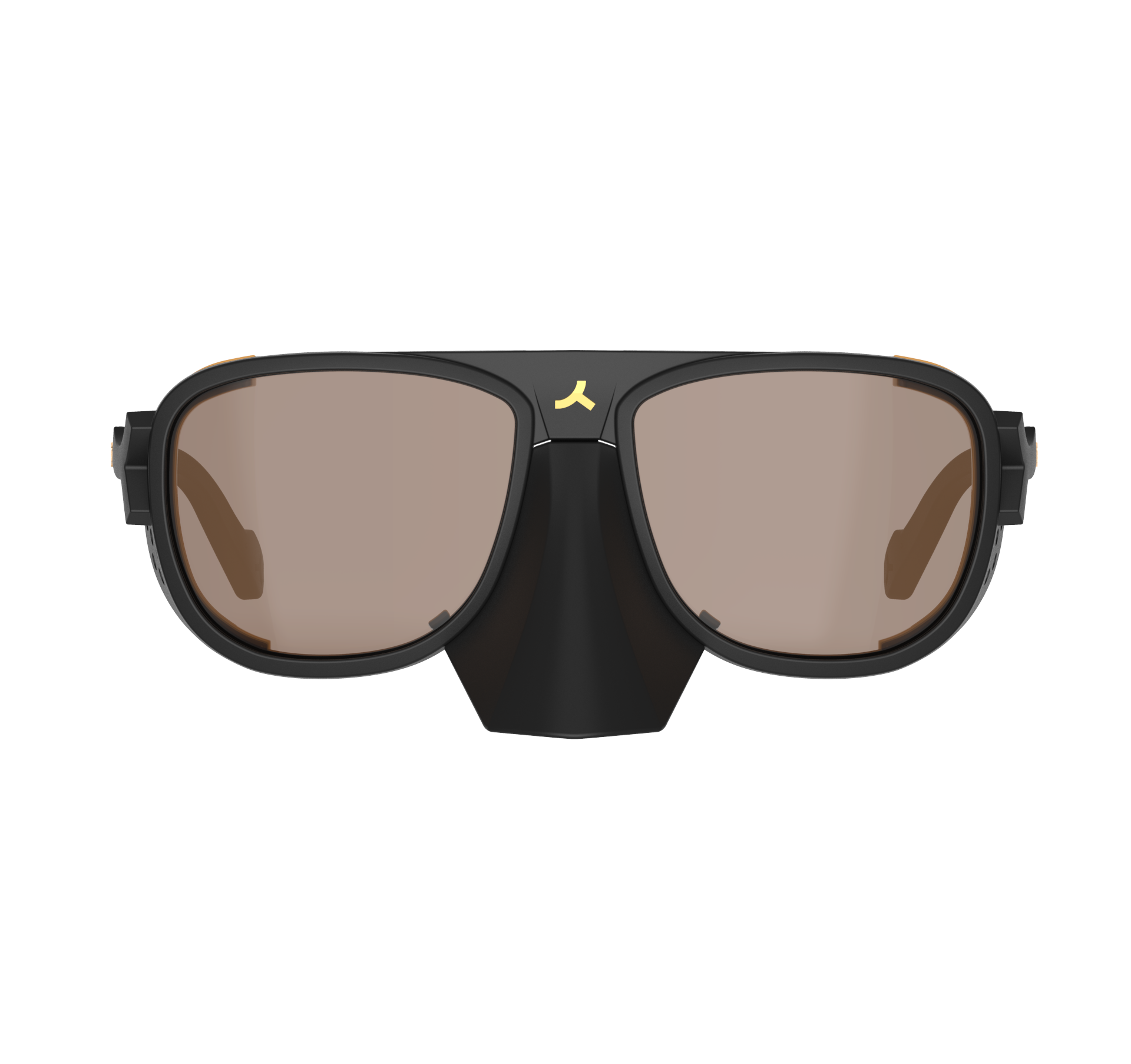 För att ge maximalt skydd är modellen utrustad med avtagbara sidokåpor och ett nässkydd som minskar mängden ljus som når ögonen från sidorna och nedifrån. Detta är särskilt värdefullt i miljöer där solljuset reflekteras från snö, is eller ljusa ytor.
