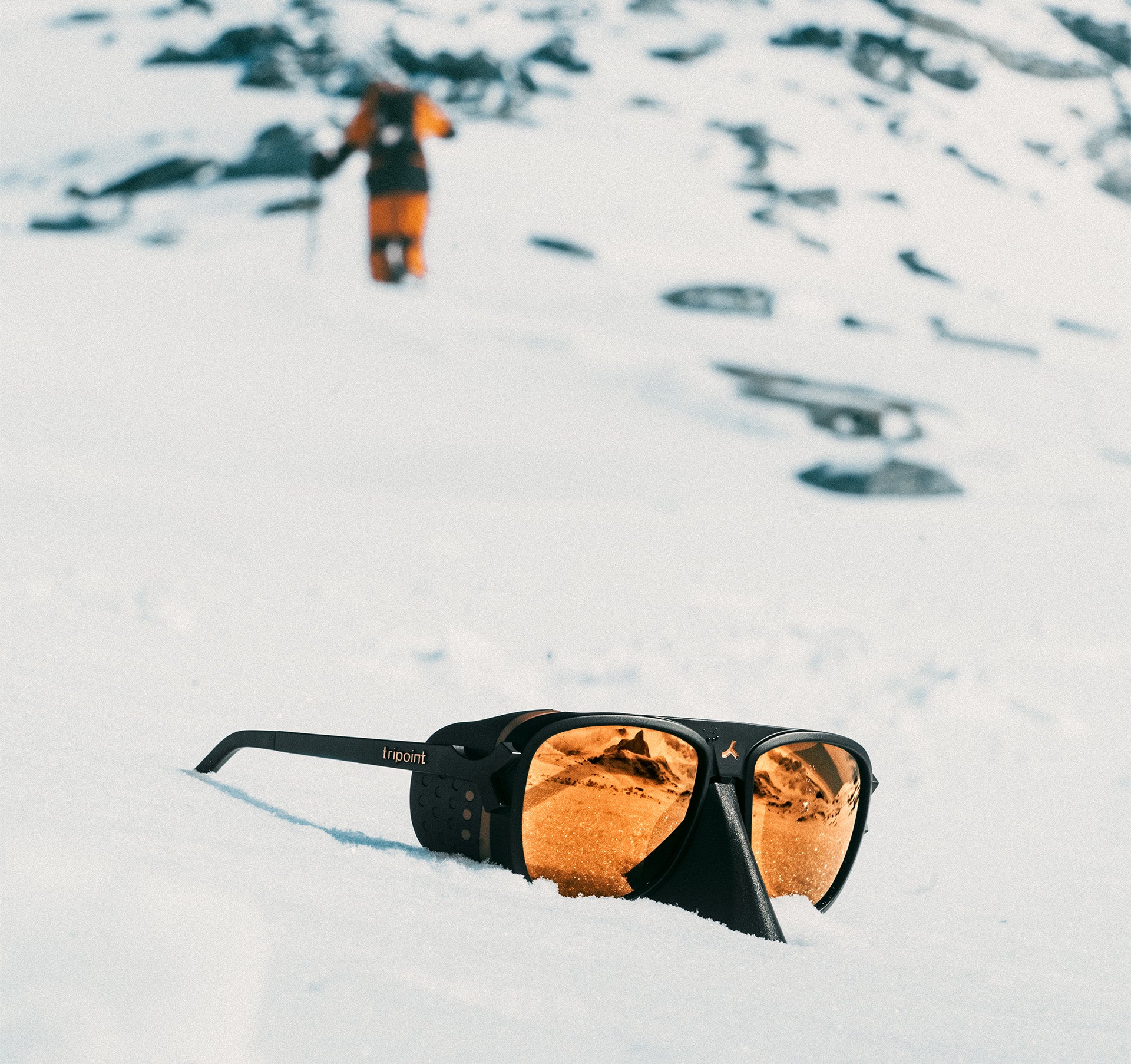 Tripoint 010 Visviri X är utvecklade för aktiviteter i miljöer med extremt starkt solljus, exempelvis glaciärer, högfjäll och öppna alpina landskap. Den mörka kategori-4-linsen i polykarbonat kombineras med Tri-X polariserande filter som reducerar bländning och ger klar och stabil sikt även i mycket starkt ljus.